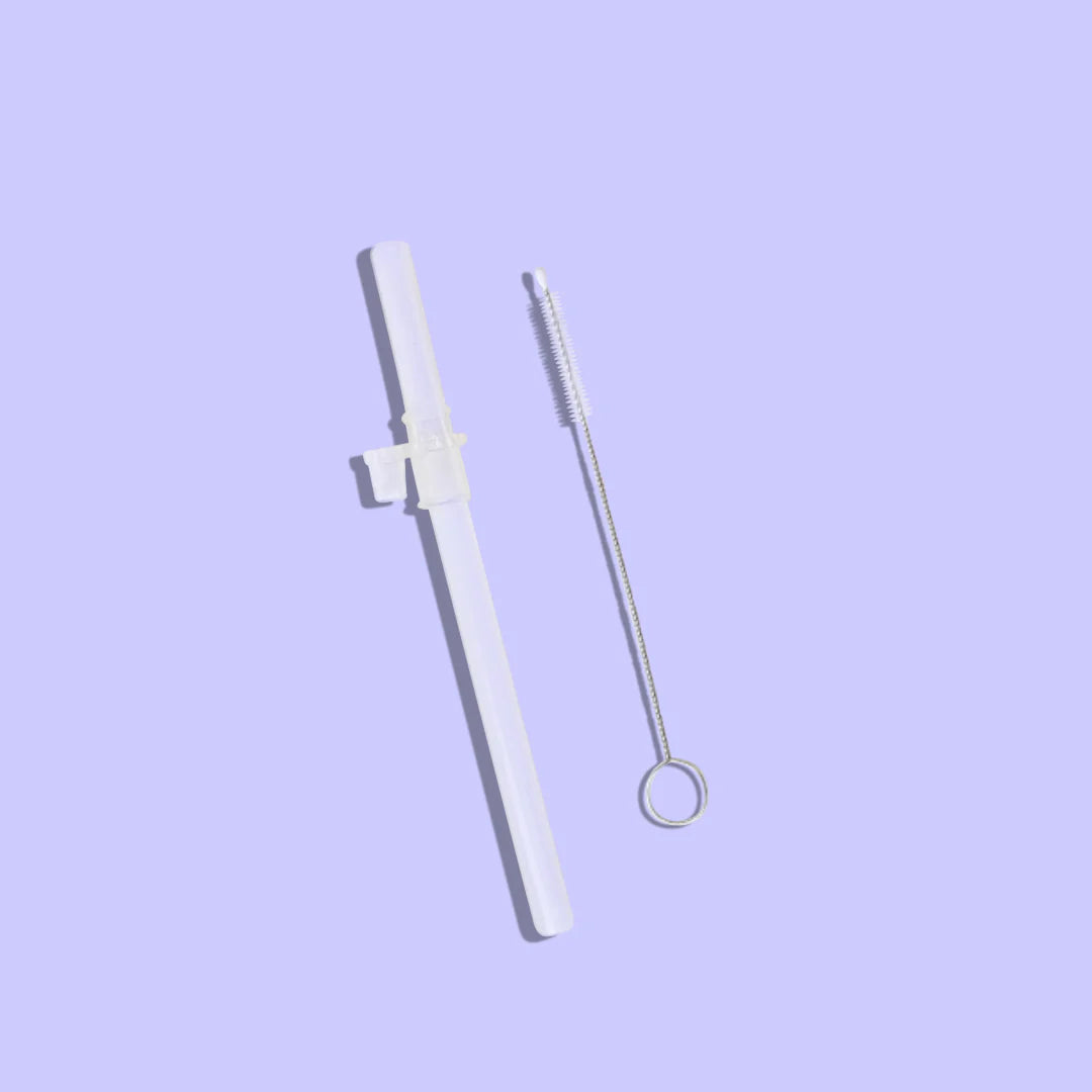 1x Big Kid Straw - Made from two parts: a soft silicone upper with our easy-suck valve (same as our weighted straw!) and a rigid, thicker base with no weight.