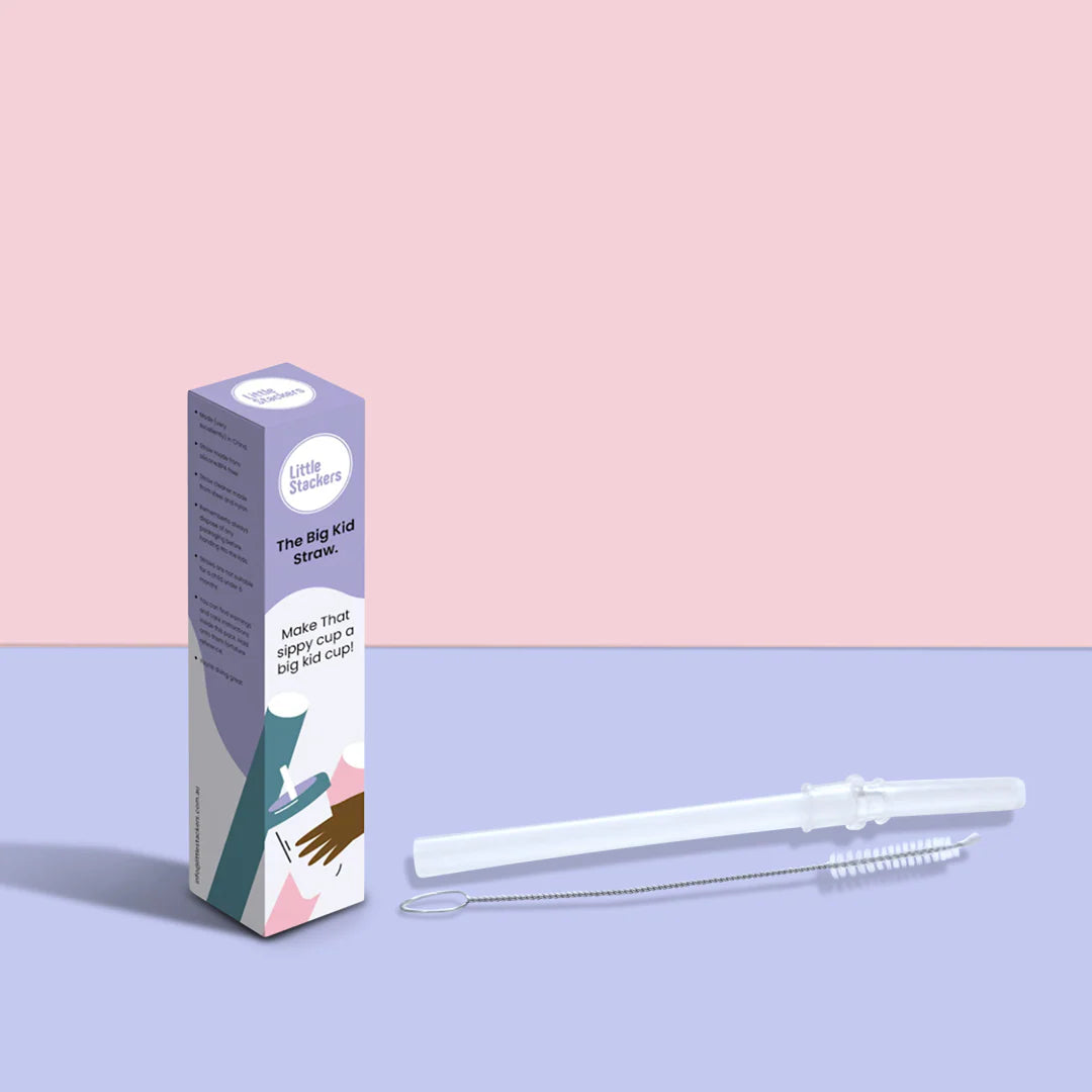 Upgrade your Little Stackers sippy into a proper big kid cup! This straw is wider for more gulp, rigid (not weighted), and made to fit perfectly into our sippy lids. Think of it as the low-fuss, ready-for-anything sibling.