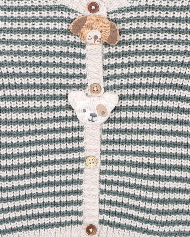 A cosy classic with a playful twist, this beautifully knitted cardigan brings a little personality to cooler-day dressing. Featuring charming dog character details down the button placket, it's crafted in a soft organic cotton and wool blend that feels gentle against delicate skin. Finished in timeless neutral tones, it's a special layering piece designed to be worn, loved and passed on.